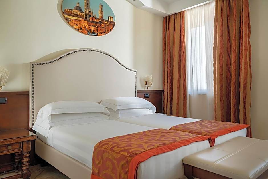 Located on the upper floors, this elegant air-conditioned room has views of either the Tuscan hills (window, no balcony) or over Siena's rooftops with balcony. Please specify your preference when booking. The rooms include free WiFi, a flat-screen TV and a tea/coffee maker. The private bathroom has a bath.